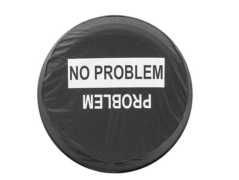 Effective Spare Tire Protection with an Eye-Catching Look. If you’re looking for a tire cover that adds a bit of whimsical fun to your rear with this No Problem/Problem Spare Tire Cover. This tire cover features the phrase "No Problem" in black against a white background with the text "Problem" upside-down underneath it, in white. This design allows you to get a different effect by simply flipping it around to have "Problem" on top. Moreover, this cover’s strong build ensures your spare tire is well protected against damage especially when out on the trails.