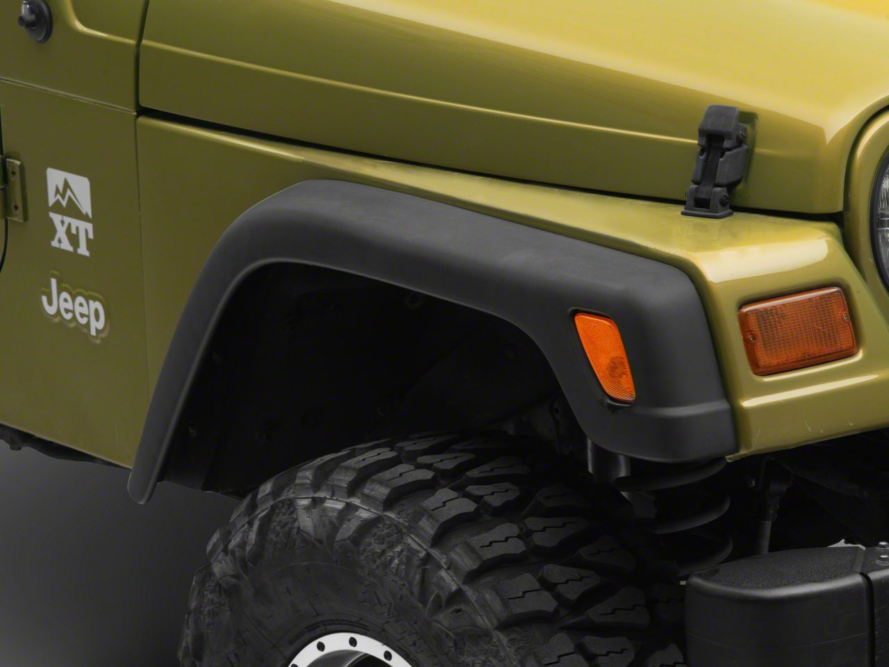 Application. These OE Style Fender Flares in Textured Black fit all 1997-2006 Jeep Wrangler TJ models.
