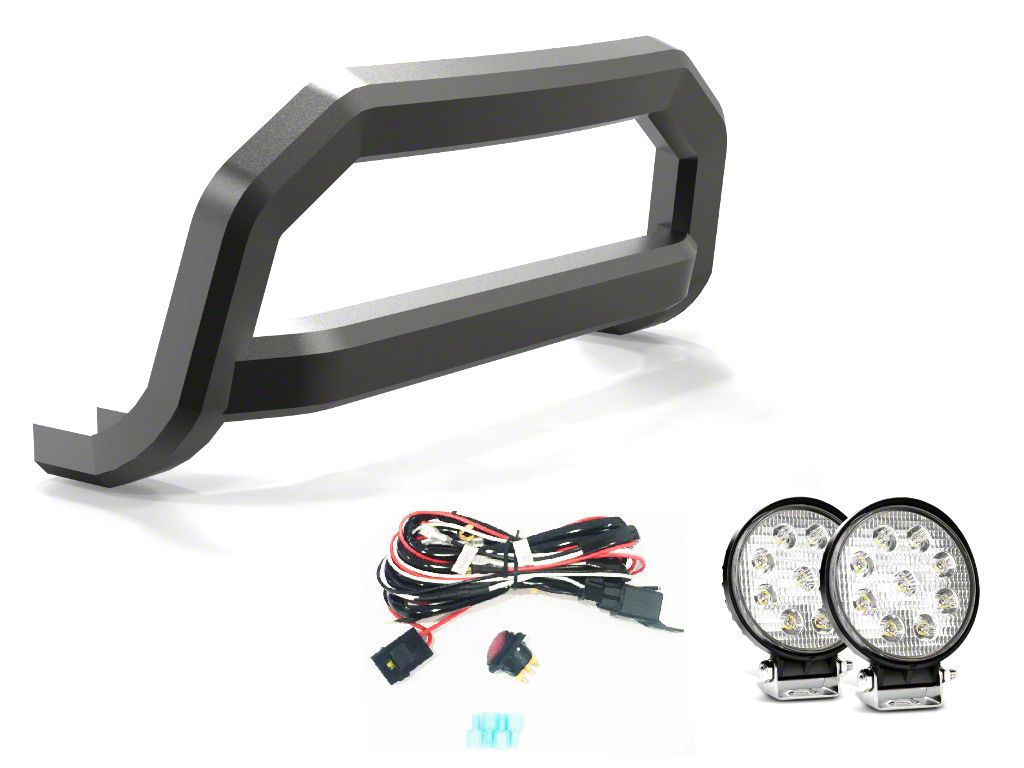 Rugged Front-End Protection. The Optimus Sport Bull Bar with 4.50-Inch Round LED Lights adds aggressive style and enhanced safety to your Jeep Wrangler JL. It offers durable front-end protection while integrating powerful LED lighting for improved nighttime and off-road visibility. Furthermore, this bull bar is the perfect upgrade for off-roaders and style-conscious Jeep owners.