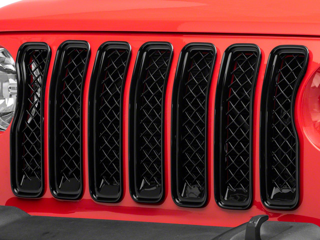 Application. This Gloss Black Overlay Grille fits all 2018-2023 Jeep Wrangler JL models.