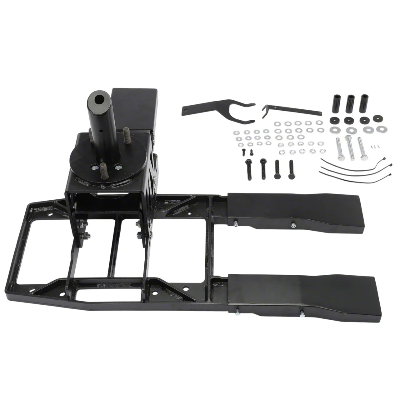 Construction and Appearance. Constructed from heavy-duty materials, this tire carrier is engineered to withstand the additional weight of oversized spares. It is designed to maintain rear door functionality, preserving easy access to the cargo area without compromising structural integrity. Its robust design blends seamlessly with the Jeep's rugged style, making it both functional and visually appealing.