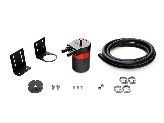 Includes an HPS catch can, 1/2" barb adapters, 6 feet of 1/2" rubber hose, stainless steel clamps, and all basic hardware.