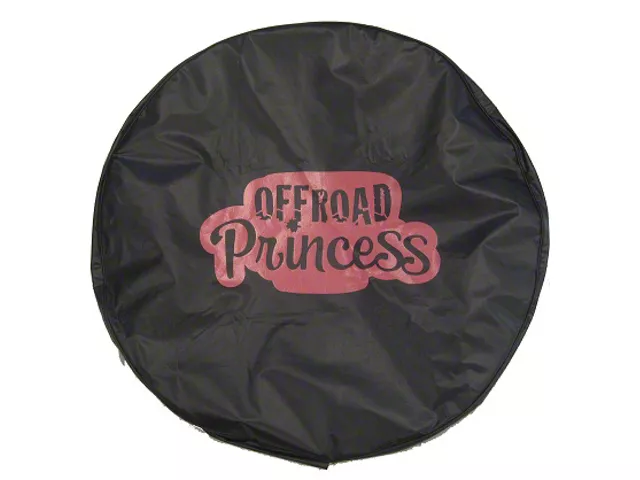 Stylish Tire Cover for the Off-Road Princess. This Pink Off-Road Princess Black Spare Tire Cover is the perfect tire cover for all the lady Wrangler owners who are just as involved in off-roading as the boys. This cover features the Off-Road Princess graphic in pink that’s not only eye-catching but tells everyone about your love for the open trail. What’s more, it’s wear-resistant vinyl construction ensures you get excellent protection for your spare tire whenever you hit the trails.