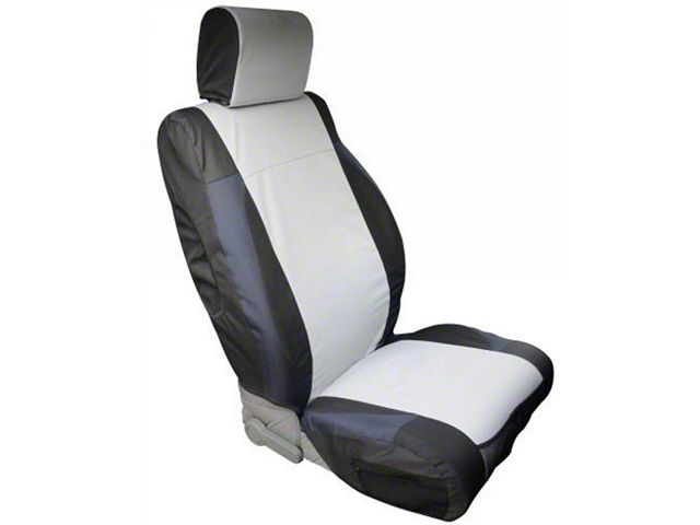 Protective Styling. Your Jeep Wrangler seats can take a lot of damage from daily use. The Jeep Wrangler Polycanvas Front Seat Covers by Rampage Products offer their unique brand of protection while also upgrading the interior style of your Wrangler. Experience the superior comfort and great design of these black and gray front seat covers with storage pockets and very strong lace-up drawcords that help keep the fabric snug to your seats.