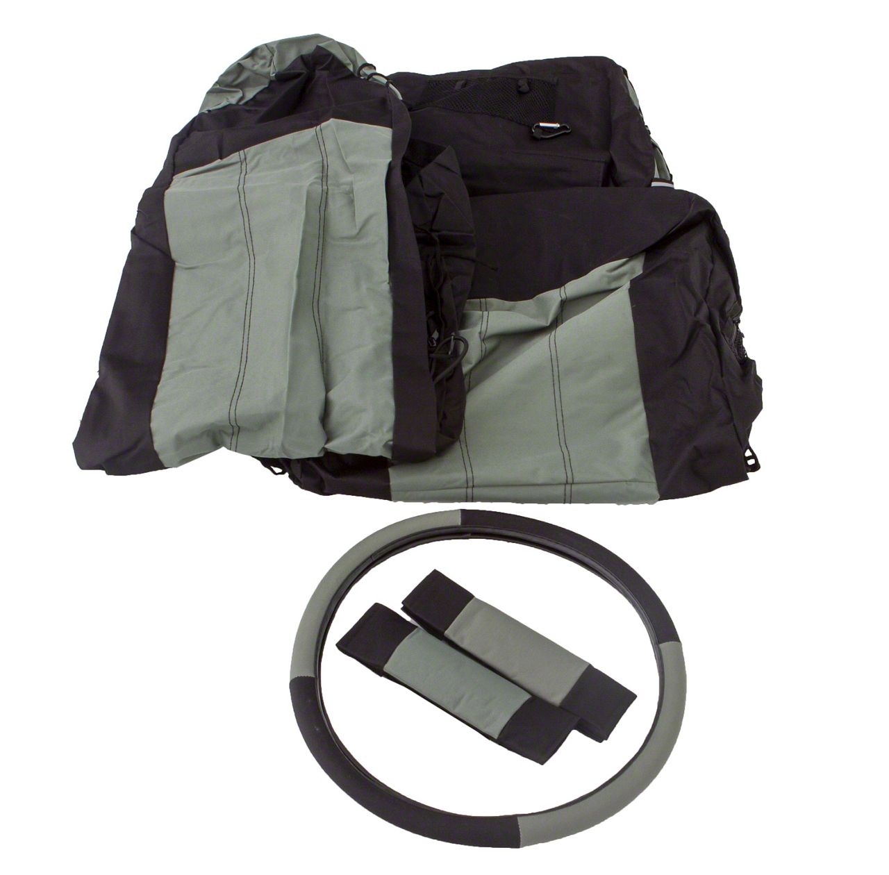 Polycanvas Front Seat Covers with Steering Wheel Cover; Black/Gray (87-02 Jeep Wrangler YJ & TJ)Find parts that fit my vehicle