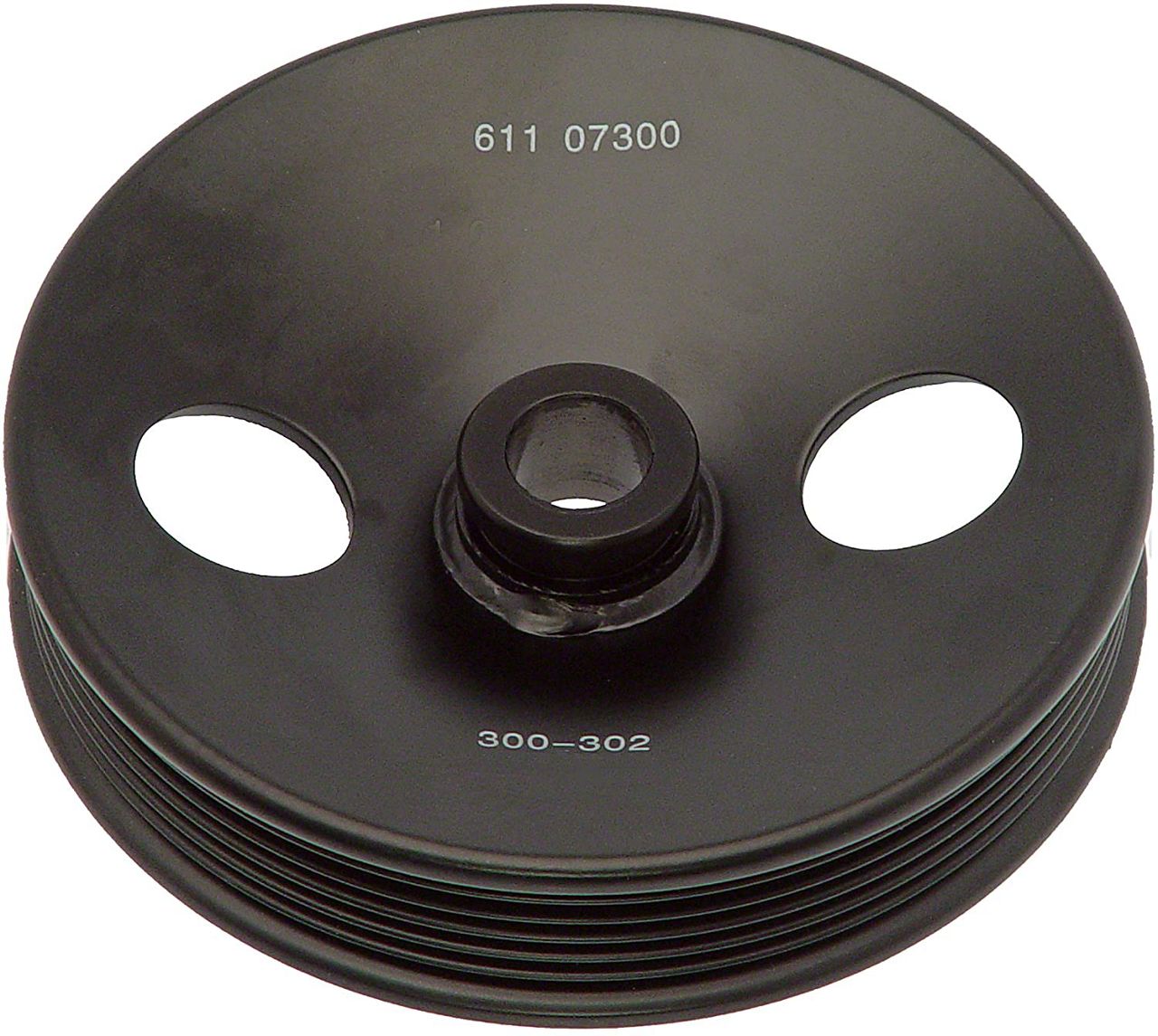 Efficient Performance. The Power Steering Pump Pulley is an essential component designed to enhance the efficiency and reliability of your vehicle's power steering system. Made from durable steel and finished in black, this regular-grade component features a serpentine belt composition and a specific groove quantity of M6 -1.0.