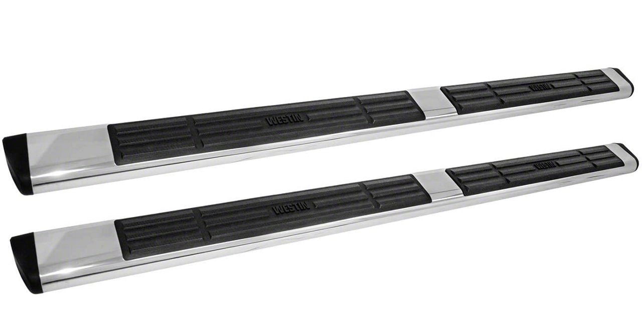 Description. Step Nerf Bar; 53-Inch Length; 6-Inch Wide; Polished Stainless Steel; With Mounting Kit