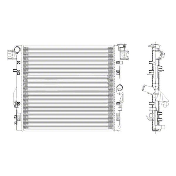 Exact Replacement Radiator. Swap out a damaged radiator on your Jeep using this Replacement Radiator and get the same fitment and performance as the original in your ride. This replacement part is durable, and it functions the same as the stock unit.