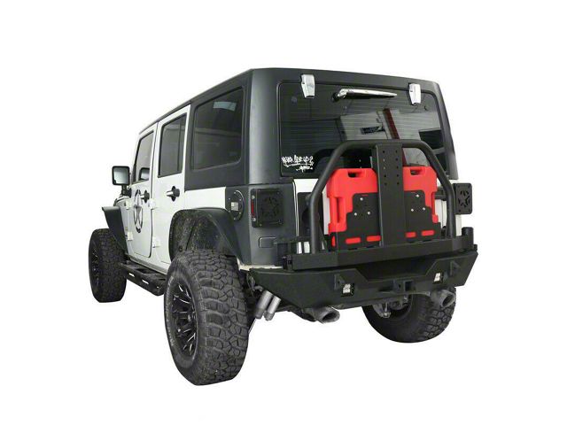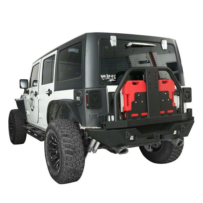Application. This Rear Bumper with Tire Carrier and Jerry Can Holder fits 2007-2018 Jeep Wrangler JK Models.