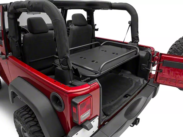 Organize Your Jeep’s Rear. If you’re looking to better organize your Wrangler’s rear storage area, this Rear Fold-Up Interior Storage Rack is just what you need. This rack’s unique design essentially doubles your Jeep’s storage area, giving you space to carry everything from camping gear to work equipment. Moreover, its rigid all-steel build provides a weight capacity rating of 75 pounds, which is more than enough for all your cargo needs.
