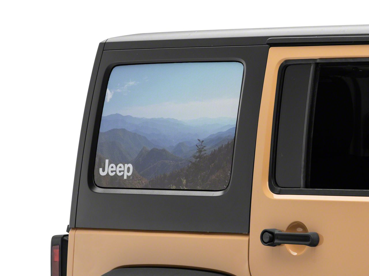 Application. These Jeep Licensed by RedRock Rear Side Window Decals; Mountain are designed to fit 2007-2018 Jeep Wrangler JK 4-Door models. Driver and passenger side included.