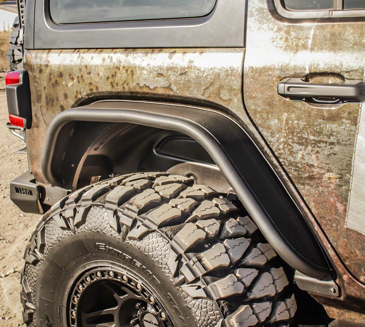 Application. This pair of Textured Black Rear Tube Fenders is intended for use on all 2018 to 2026 Jeep Wrangler JL models.