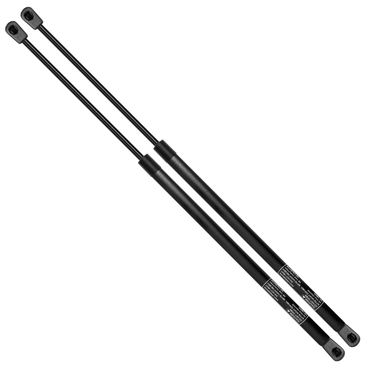 Construction and Appearance. Finished in a combination of glossy black and polished chrome, these support struts are both functional and stylish. Engineered to OE-compatible specifications, they feature a compressed length of 13.62 inches, a stroke length of 9.37 inches, and an extended length of 22.99 inches. Their durable construction ensures strength and long-term dependability under repeated use.