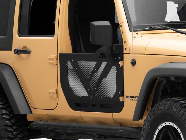 Open-Air Design. Experience more of the outback and enjoy your drive with this Recon Front Half Doors on your Jeep Wrangler. Made from hard steel and aluminum, it features a strong structure that allows plenty of cool breeze to pass through but block off large debris and mud. It features a strong design that adds a bold look to your vehicle, giving you that full outback experience.