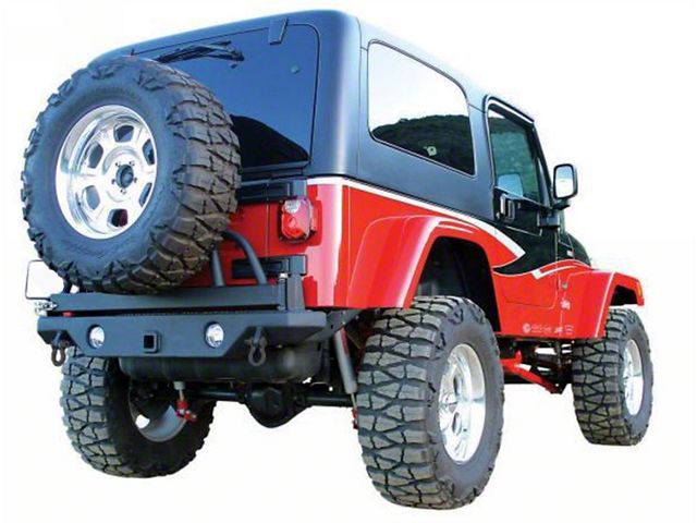 Application. This Recovery Rear Bumper with Swing Away Tire Mount; Black is designed to fit 1987-2006 Jeep Wrangler YJ and TJ models.