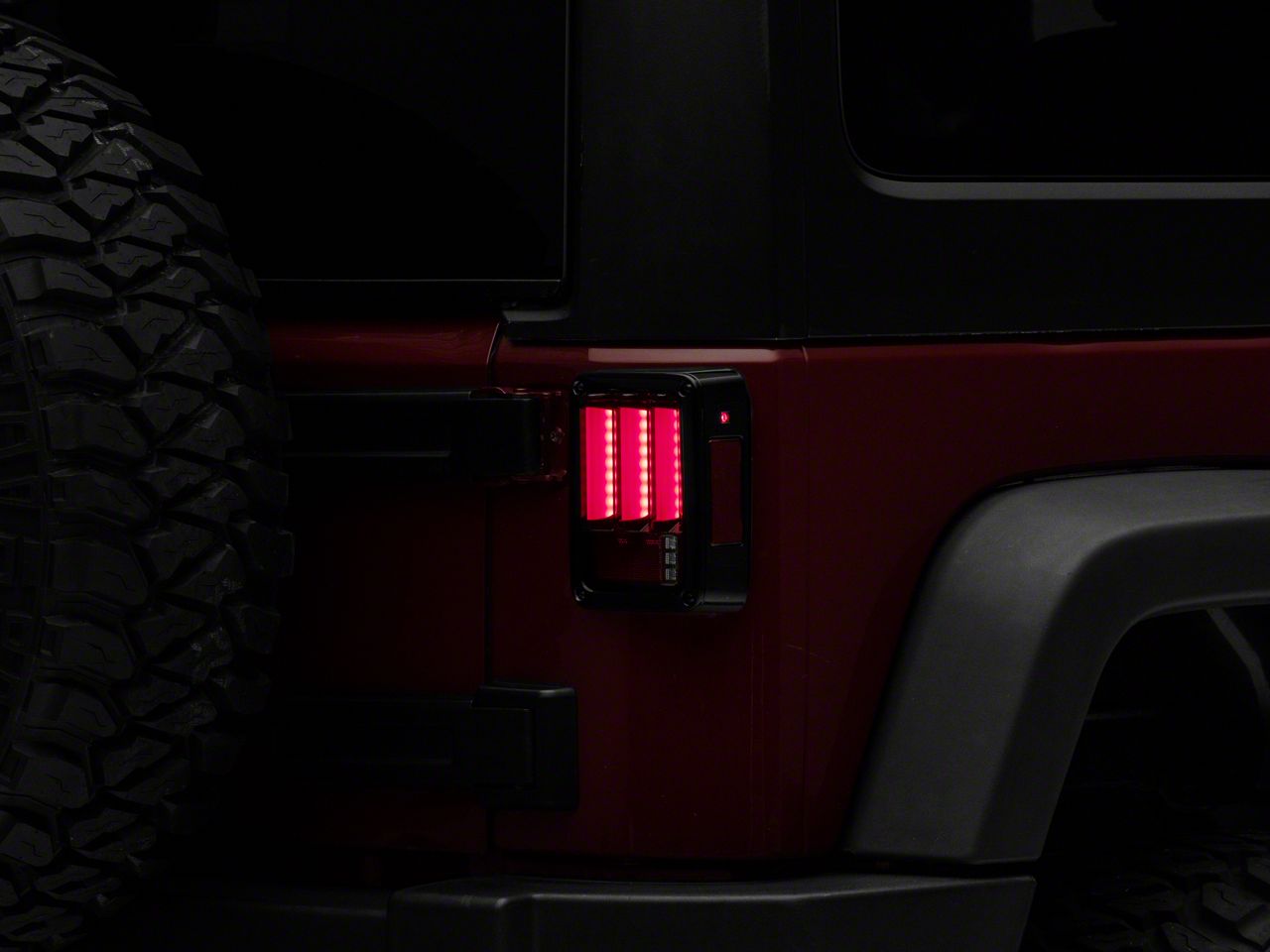 Crafted From Tough Components. Each tail light is constructed with heavy-duty black plastic housings and durable red lenses. These Tail Lights boast high-quality fiber optic LED lighting components and sequential lights, which offer a far brighter and longer-lasting illumination. Thanks to the tail lights’ construction, you can rest assured that they can keep up with your Jeep’s heavy-duty applications.