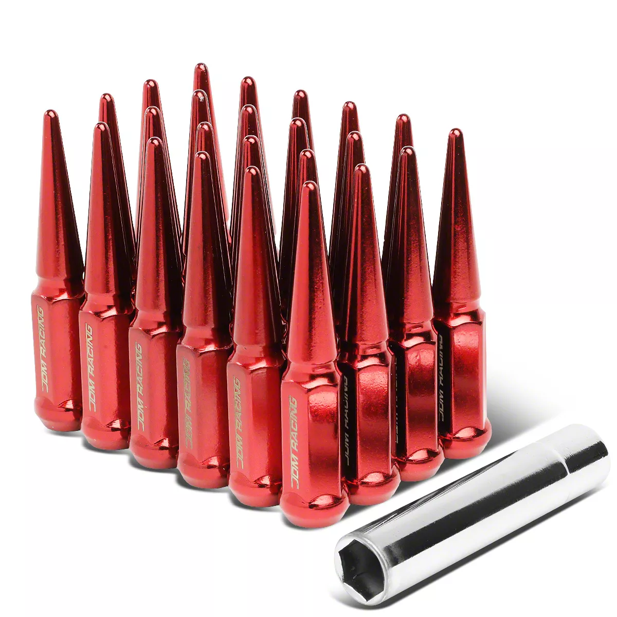 Upgrade Your Vehicle's Style and Performance. The Red Spiked Lug Nuts; M14x1.5; Set of 24 are the perfect way to add a bold, aggressive look to your 2018-2026 Jeep Wrangler JL. These high-performance lug nuts feature a unique spiked design and a striking red finish, making your wheels stand out on and off the road. Whether you're upgrading your truck’s appearance or enhancing your vehicle’s durability, these lug nuts combine style with functionality for a perfect custom touch.
