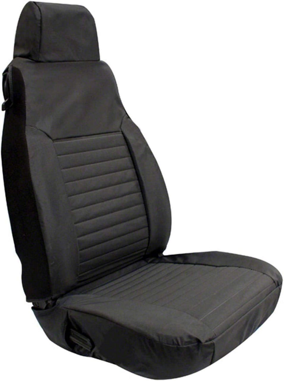 Description. JK custom fit Polycanvas seat covers are durable and a custom fit to factory 07-12 JK front and rear seats. Front seat covers have built in Side Air Bag pocket for added safety. Front and side mesh zippered pockets add convenient storage on all seat covers. Large rear pockets with flaps and small mesh zippered pockets add additional rear access storage. Included rear carabiner clip can be used to secure items. Padded center section is for a custom look and feel. The custom fit headrest covers included on front and rear seat covers. Front applications with headrest come in pairs and matching rear seat cover with headrest sold each. Easy installation with heavy-duty straps and clip. Also includes matching shoulder harness belt pads.