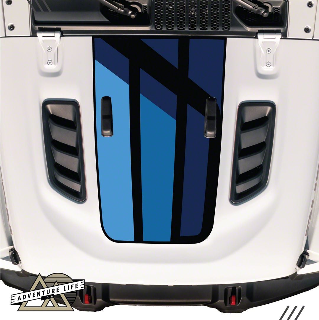 Retro Blue Stripe Hood Graphic with Washer Nozzle Cutouts; Matte (18-26 Jeep Wrangler JL Rubicon)Find parts that fit my vehicle