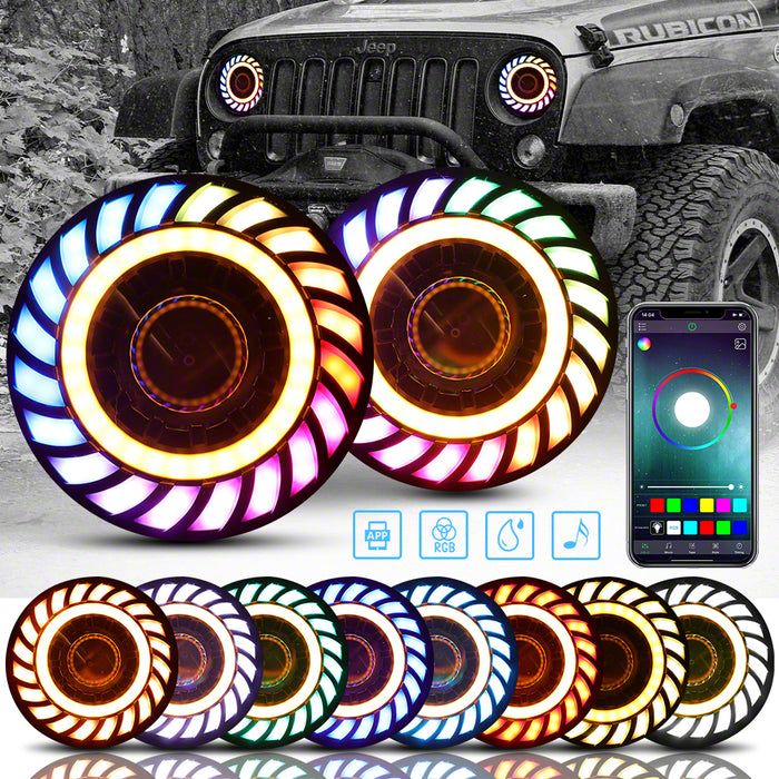 Dynamic RGB Halo Lighting with 3D Rotating Effect. The RGB 3D LED Lens Halo Rotating Headlights; Black Housing; Clear Lens for 1997-2018 Jeep Wrangler TJ & JK deliver a bold, modern upgrade that transforms your Jeep’s front end. Featuring customizable RGB halos with a striking 3D rotating effect, these headlights let you personalize your lighting style for both on-road presence and off-road attitude.