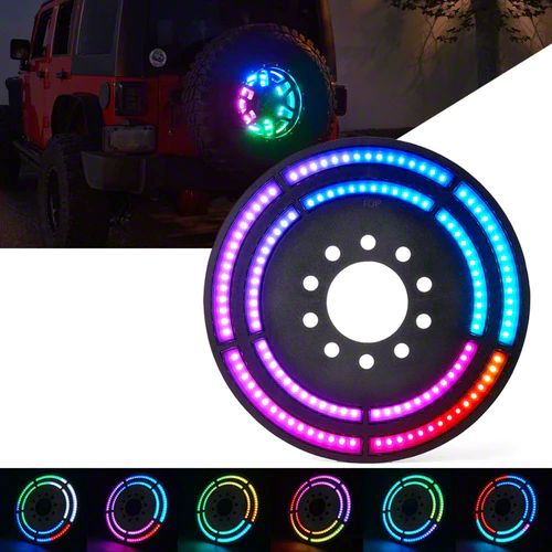 Personalized Lighting. With a wide range of colors and lighting modes to choose from, you can personalize your Jeep's look and create a truly unique statement. Set the mood with static colors, dynamic flashing patterns, or even music-synced animations. The possibilities are endless with the RGB Dual Ring Spare Tire LED Brake Light.