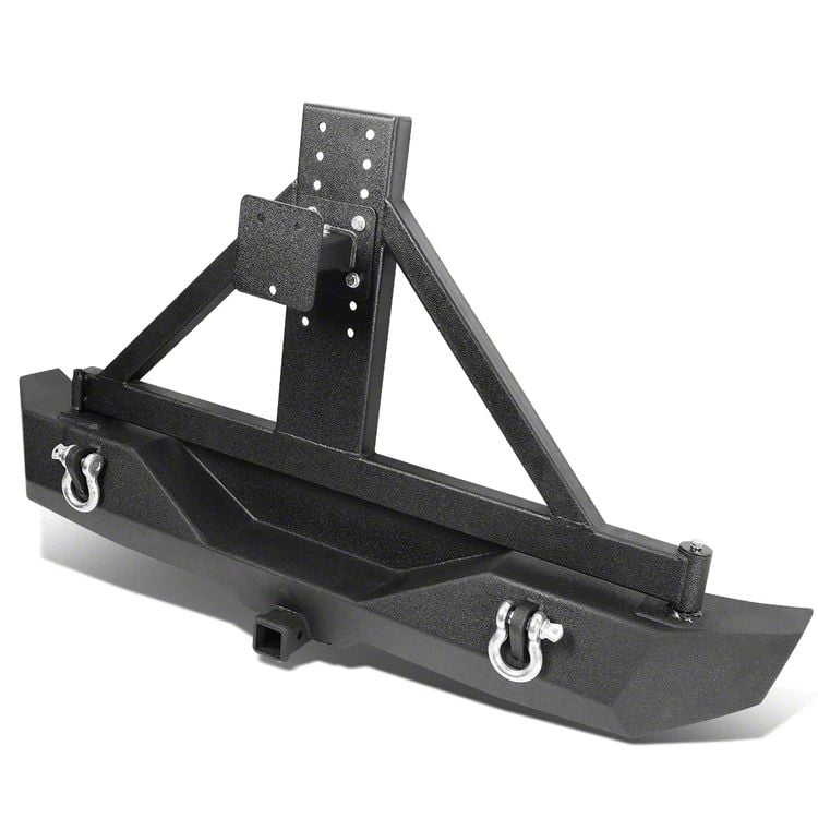 Off-Road Ready. The Rear Bumper with Tire Carrier is tailor-made for the Jeep Wrangler JK, designed to enhance its utility and resilience. It comes equipped with a tire carrier, D-ring mounts, and integrated hi-lift jack points, making it indispensable for serious off-roading adventures.