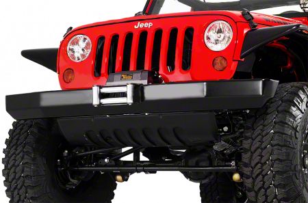 Impressive Front Bumper. Complete your Jeep Wrangler JK’s off-road-ready build by replacing its stock front bumper with this Rock Crawler Winch Front Bumper in Black. This front bumper is built to keep up with your heavy-duty off-road adventures, as well as improve its performance. This is because it’s made from durable material and designed with a winch mounting plate.