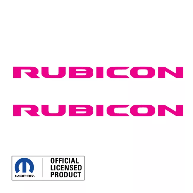 Stylish Hood Graphic. The RUBICON Hood Graphic in a hot pink finish is designed to add a bold and stylish touch to your Jeep Wrangler JL. This officially licensed Mopar product features the iconic Rubicon logo, enhancing the look of your vehicle with a touch of personality.