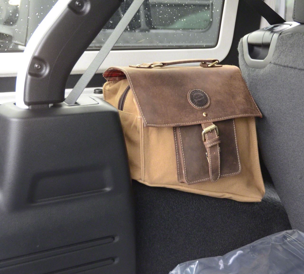 Efficient and Classy Driver Side Storage. Provide your Wrangler with an efficient and classy storage solution with this Saddlebag in Tan for the Driver Side. This saddlebag features an angled form that’s designed to snugly fit into the space above your driver side wheel well in your cargo bay. Likewise, this bag offers approximately 400 cubic inches of storage space. These factors work together to efficiently organize this area of your Jeep. Moreover, this accessory’s premium canvas and leather construction gives your interior a classy style accent that you’ll surely appreciate.
