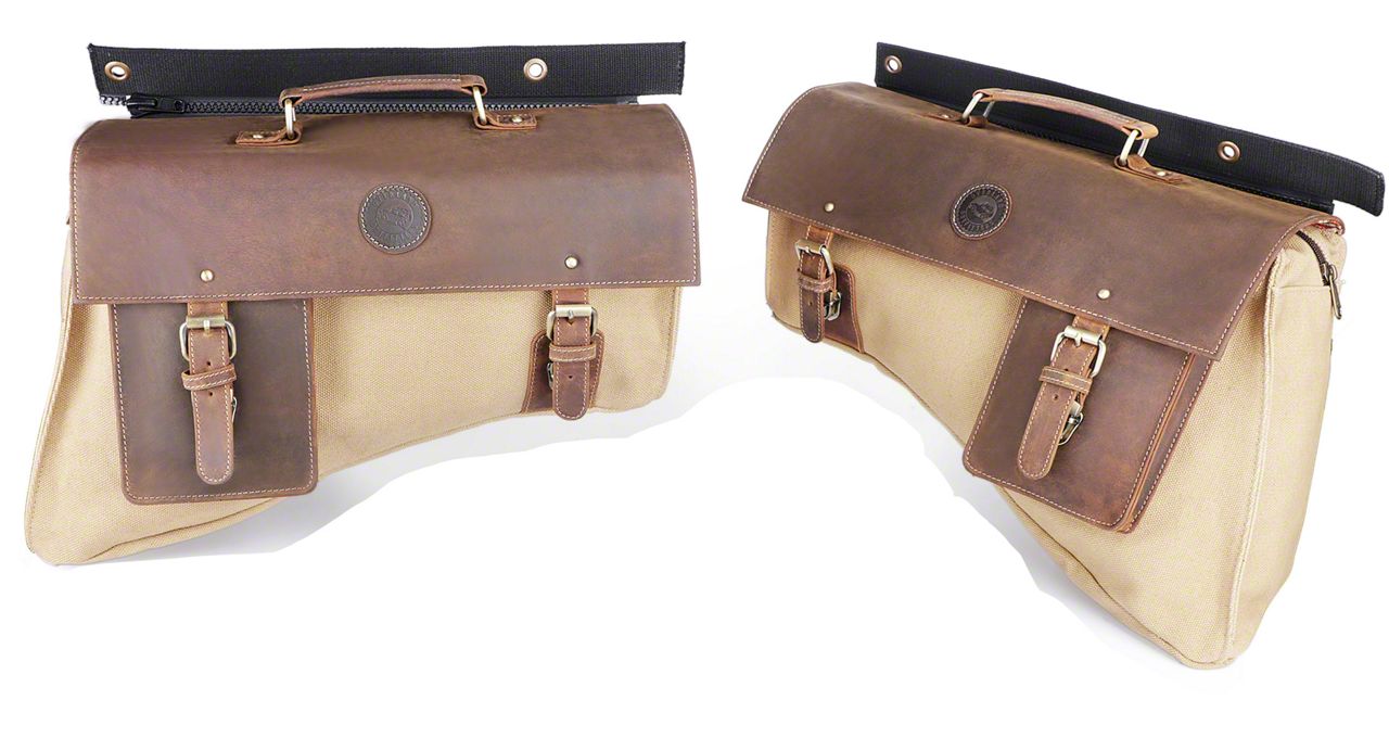 Organize Your Cargo Area in Style. Efficiently organize your Wrangler JL’s cargo area in style when you install these Saddlebags in Tan. These saddlebags are designed to install above the wheel wells of your Jeep’s cargo area. This design, when combined with the bags’ approximately 400 cubic inches of available storage, enables them to efficiently organize your cargo bay. Meanwhile, these saddlebags novel attachment system keeps these components secure while allowing easy detachment, so you could transport them when needed. What’s more, these components’ military-grade canvas and leather accents provide a sleek style to your interiors.