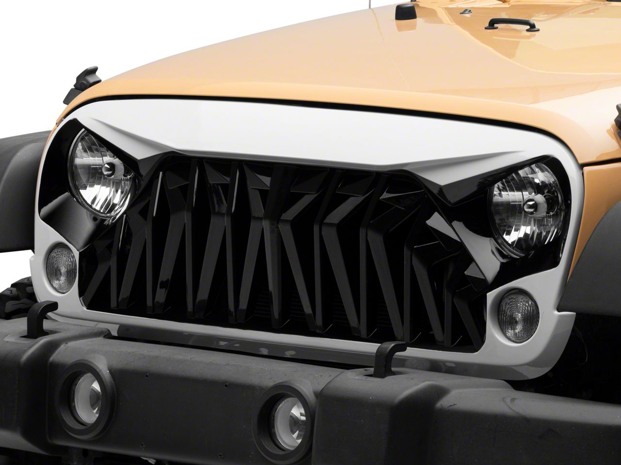 Application. This American Modified Shark Grille in White and Black is designed for 2007-2018 Jeep Wrangler JK models.