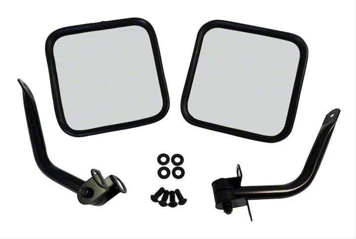 Description. Door Mirror Kit; Gloss Black Mirror Kit for 1976-1983 Jeep CJ-5, 1976-1986 Jeep CJ-7, 1981-1986 Jeep CJ-8, & 1987-1995 Jeep YJ Wrangler; Includes Mirror Heads, Arms, & Hardware; N/A