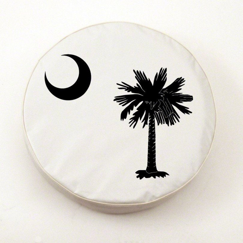 For That Personalized Touch. Express your love for South Carolina by equipping this South Carolina State Flag Spare Tire Cover in Black. The flag’s distinct sabal palmetto and crescent moon are printed using UV resistant inks, so you can rest assured that the design will shine through no matter the weather. What’s more, the cover’s black color gives your Jeep Wrangler JL a rugged appearance, enhancing its overall appearance as a result.