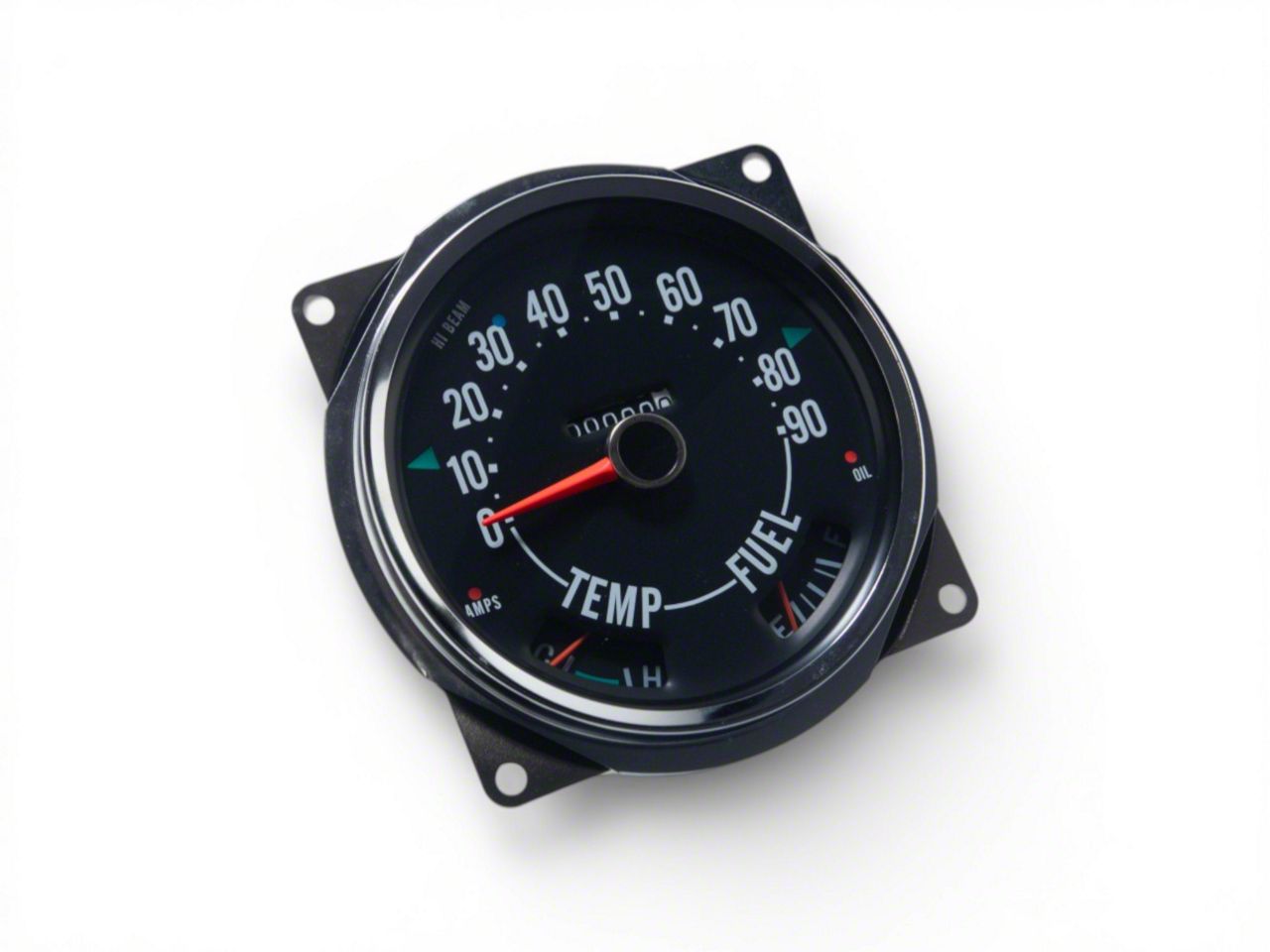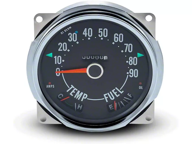 Omix Replacement Parts. Keep track of your Jeep’s speed with this replacement part designed by Omix. Created to replicate the original speedometer in your Jeep, this Jeep Wrangler Speedometer Cluster also features sockets for the high beam, oil, and amp lights, in addition to slots to display temperature and fuel readings. The gauge has a black face and white display, with an orange pointer that provides an accurate and easily readable measurement.