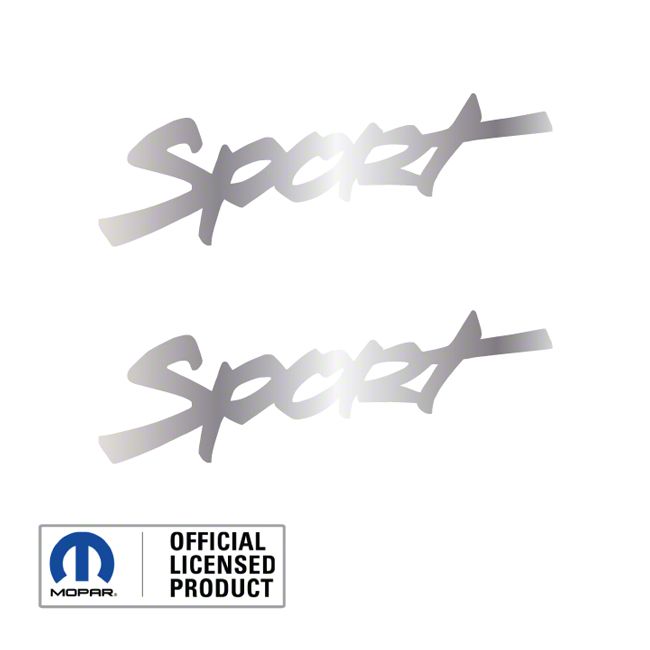 Design. The SPORT Script Side Logo in Metallic Silver provides a significant aesthetic upgrade for your vehicle, offering a sleek and modern look that can dramatically transform the appearance of your Jeep. This high-quality, stylish addition is meticulously designed to enhance the vehicle’s exterior and make it stand out on the road. By adding this logo, your Jeep will exhibit a more refined and distinctive presence, appealing to those who value both style and sophistication in their vehicle customization. It's an easy way to add a unique personal touch that perfectly reflects the driver’s style and personality, making the vehicle not just a means of transportation, but also a statement of personal taste.