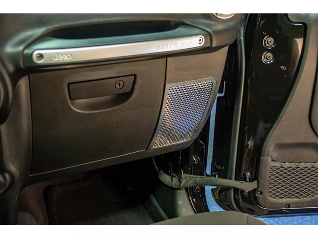 High-Quality Construction. These Jeep Wrangler Perforated Speaker Grilles are precision-cut and made from high-quality materials. The durability of the 304 stainless steel ensures reliable protection, while the strong adhesive layer guarantees a long-lasting fit. The brushed outer trim immediately improves the look of the speakers while also providing protection. Users will appreciate the superior resistance to fading, rust, and tarnishing.