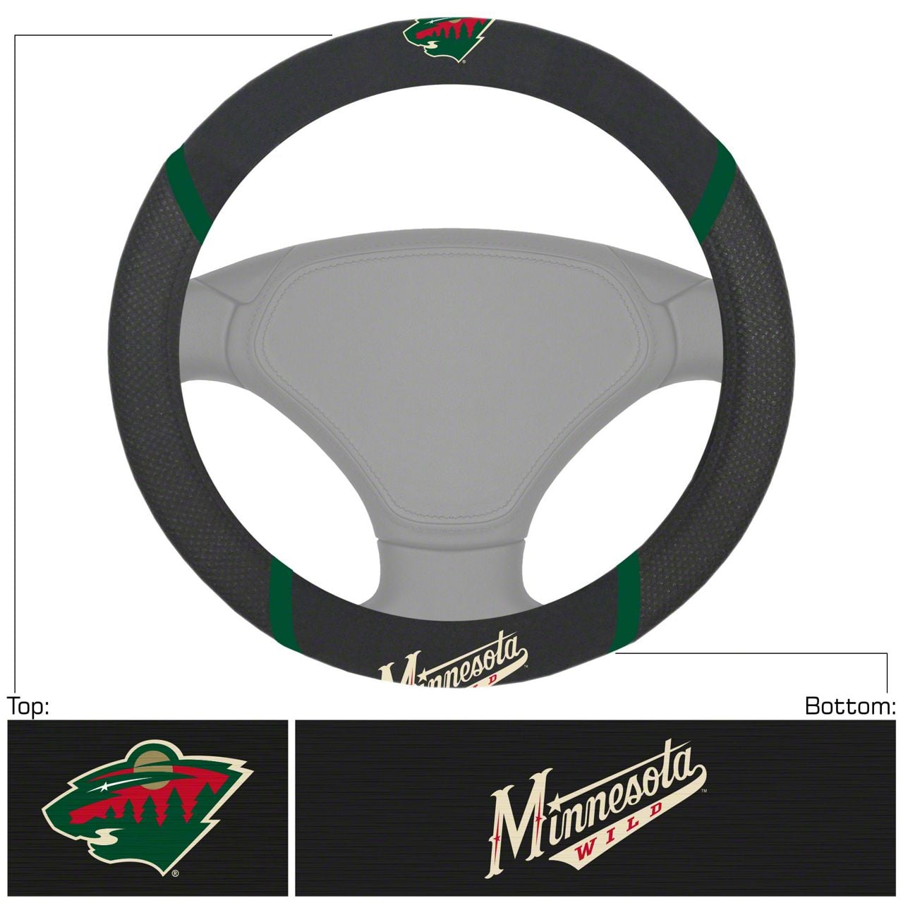 Steering Wheel Cover with Minnesota Wild Logo; Black (Universal; Some Adaptation May Be Required)