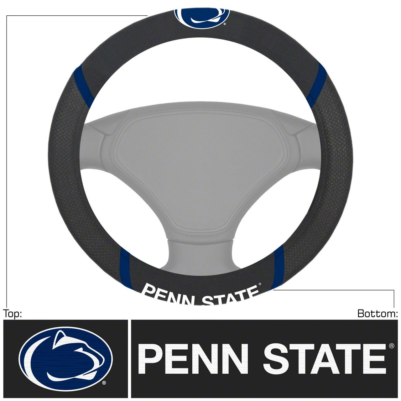 Steering Wheel Cover with Pennsylvania State University Logo; Black (Universal; Some Adaptation May Be Required)