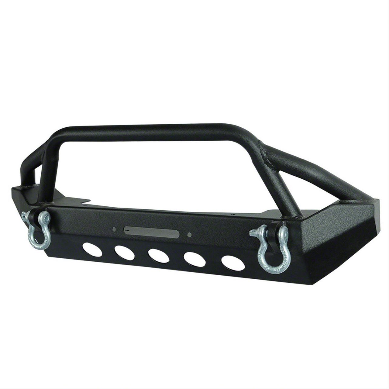 Rugged Heavy-Duty Design. Be ready to take on the trail and guard yourself from off-road damage with this Stubby Front Bumper for your Jeep Wrangler. Offering mounting for 12,000-pound winches, d-rings, and fog lights, it is made from rigid steel to give it ample stiffness and durability. It also comes with multi-stage powder-coating for a sleek look that is protected from rusting.