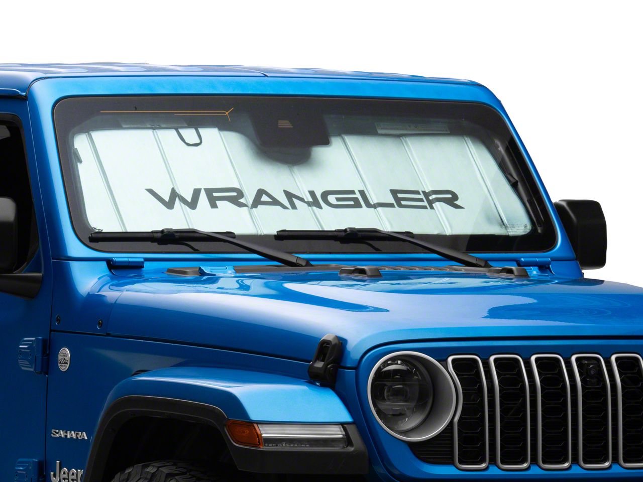 Application. This Sunshade with Wrangler Logo is designed to be used on all 1997 to 2026 Jeep Wrangler TJ, JK, and JL models.