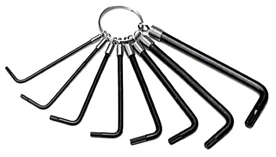 Description. 8 Piece Set; Inch L Inch Type Star Wrench Set; Chromium-Vanadium Steel