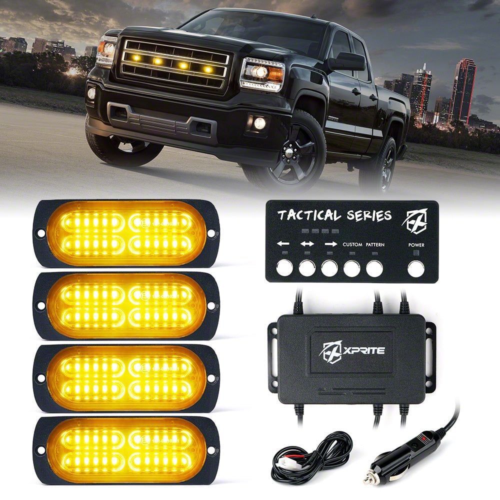 Tactical 24 Series Grille and Surface Mount Light; Set of 4; White and Amber (Universal; Some Adaptation May Be Required)