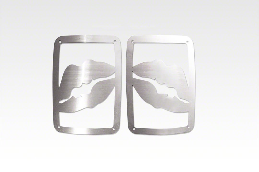 Stylish Lip Guards. Style and protect your Jeep tail lights using this Jeep Wrangler rail light cover set. The set features a pair of plates that install easily over your tail lights. The plates carry a stylish lip pattern that will give your Jeep a pair of glowing lips. This protective upgrade installs on 2007-2018 Wrangler JK models, and it installs quickly for most Jeep owners. The covers are made from rugged materials and should offer long-term protection.