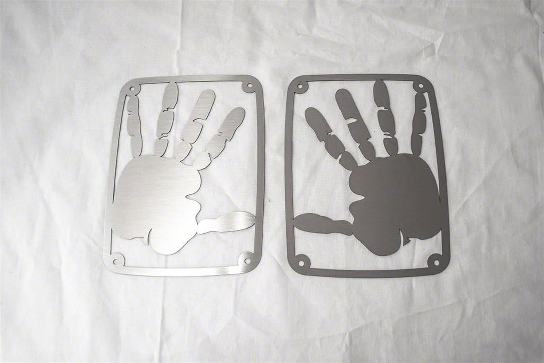 Hand Styled Covers. Add some protection to your Wrangler’s tail lights with this Jeep Wrangler Tail Light cover set and make your vehicle stand out for its unique style at the same time. These covers have a trendy hand insert that will give your tail lights a signature look while protecting them from obstacles and impacts. This cover set fits 2007-2018 Wrangler JK models and is a good investment before going off-roading.