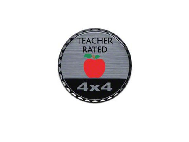 Excellent Jeep Badge. Give your Jeep an A+ in its style with this Teacher Rated Badge. Teachers who own Jeep Wranglers are sure to love this accessory, thanks to its eye-catching red apple design. With its unique look and noticeable shine, your Jeep will definitely grab people’s attention each time you take it out for a spin. This badge can be applied on any flat surface of your vehicle, making it an excellent accessory for Jeep customization projects.