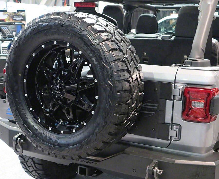 Application. The Tire Relocation Kit; Textured Black fits 2018-2026 Jeep Wrangler JL models.