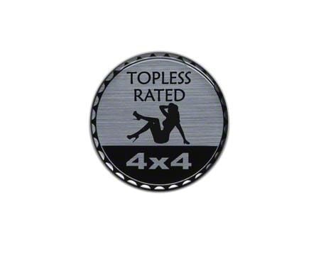 Striking Jeep Exterior. With this Topless Rated Badge, your Jeep Wrangler will gain an attention-grabbing exterior. This accessory comes with an eye-popping graphic that adds a sultry personality that just can’t be ignored. It even boasts a remarkable shine, so you’ll definitely turn heads wherever you go.