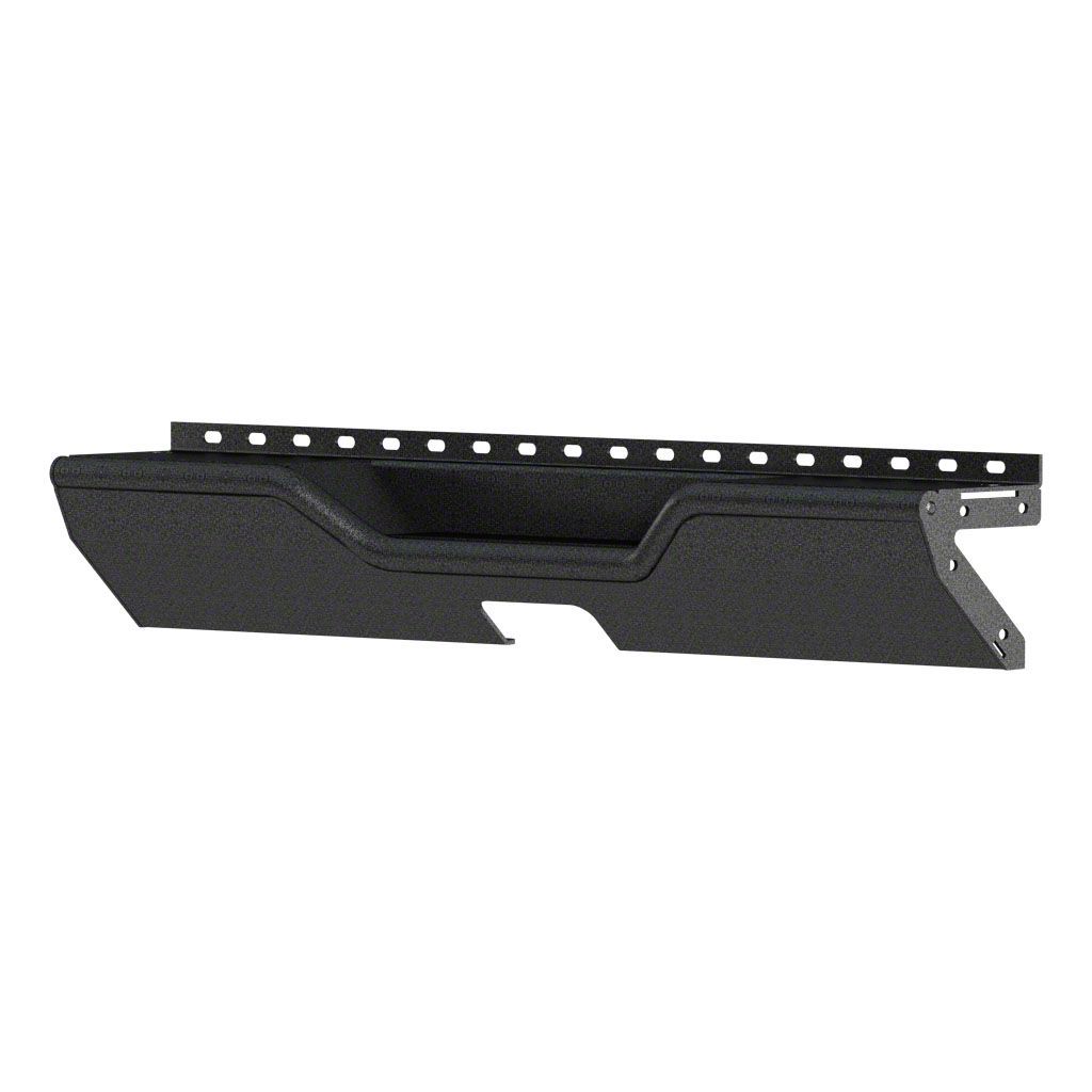 Mid-Width Rear Bumper. Make your Jeep Wrangler look good in all angles with this TrailChaser Aluminum Mid-Width Rear Bumper Center Section; Textured Black. Cruise the road or conquer different terrain while sporting a hardcore look with this Aluminum Bumper. Featuring a sporty aggressive design and a textured black powder coat, elevate the look of your machine and ride in style.