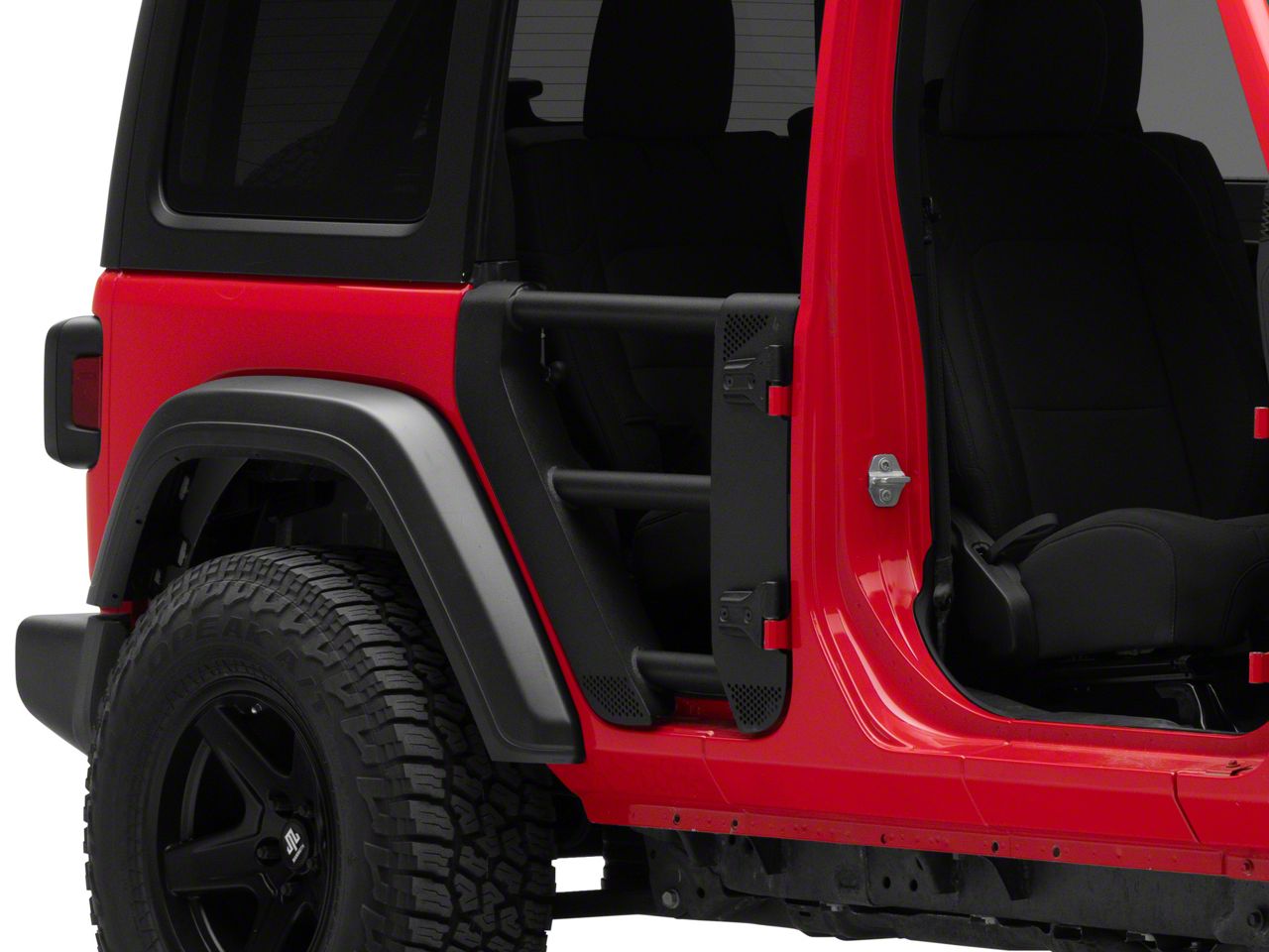Application. These Textured Black Trailline Rear Tube Doors are engineered to fit 2018-2026 Jeep Wrangler JL 4-Door models.