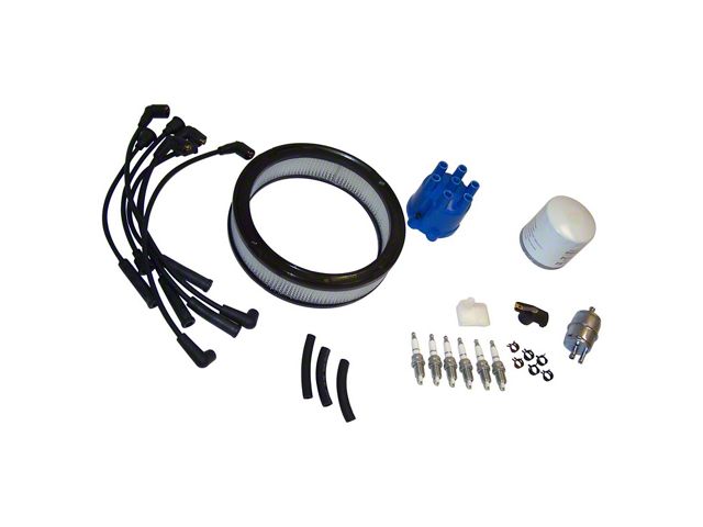 All-in-One Kit. Keep your Wrangler in excellent condition by ensuring you got a complete kit for vehicle maintenance. The Tune Up Kit for your Wrangler includes all the necessary replacement parts you need to complete your maintenance work. It includes an oil filter, air filter, spark plugs, and many more. Why wait until you need a replacement when you can have a complete kit ready to use when needed?